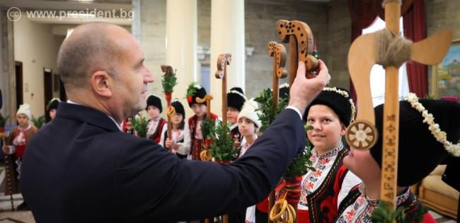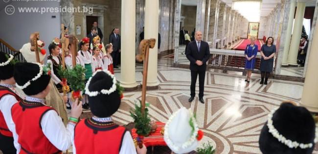 Държавният глава поздрави ученици, представили народния обичай Коледуване в президентската институция, че съхраняват българските традиции